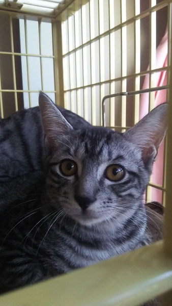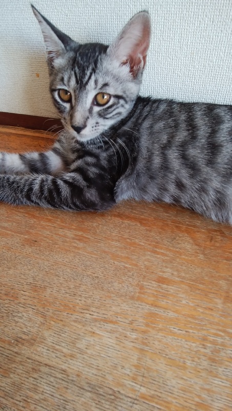 | 特徴(性格など) | キジ柄。 猫には自分からコミュニケーションをとり、兄弟のケン君の陰に隠れるようなちょっとヒビリですが穏やかなな性格です。 シマシマがくっきりのイケメン君です。 兄弟で一生懸命遊んでよく食べてよく寝て元気一杯です。 ずっと一緒に育っているのでできれば兄弟一緒の迎え入れを希望しますが単独でも可です。 保護するまで大人猫達とも暮らしていたので先住猫がいても大丈夫,です。 |