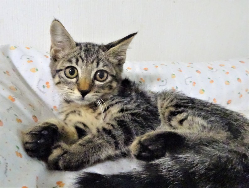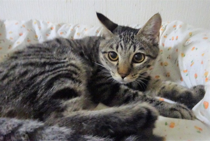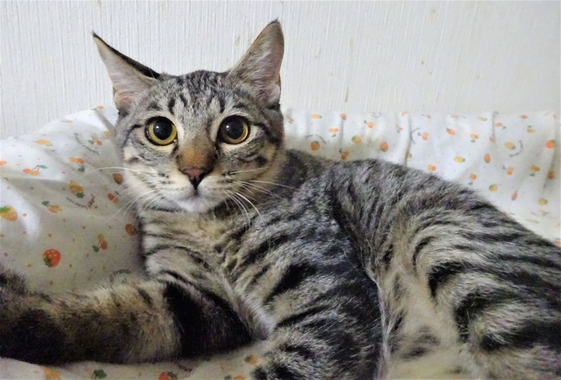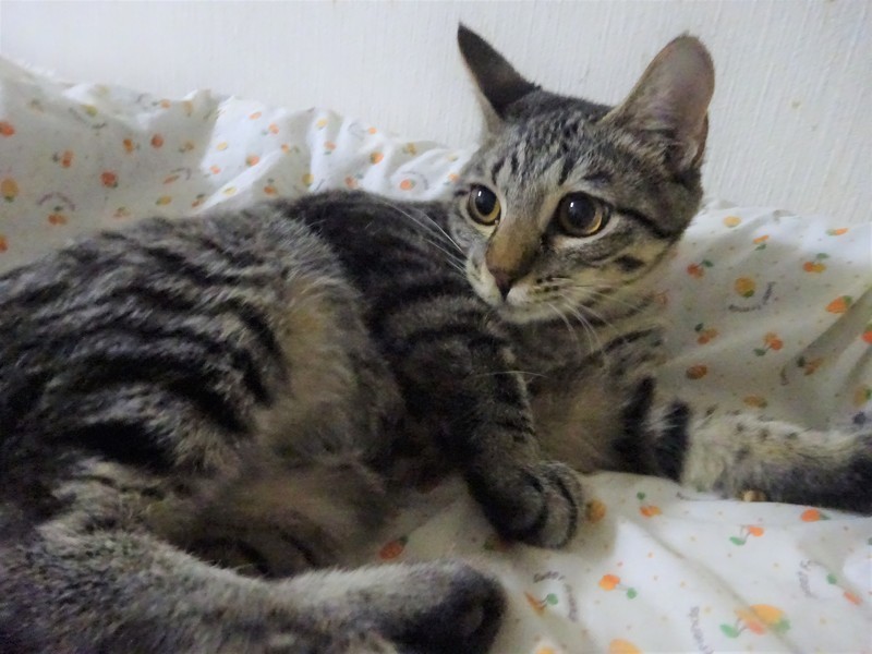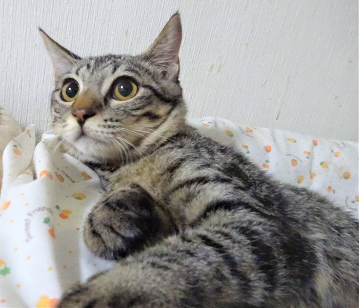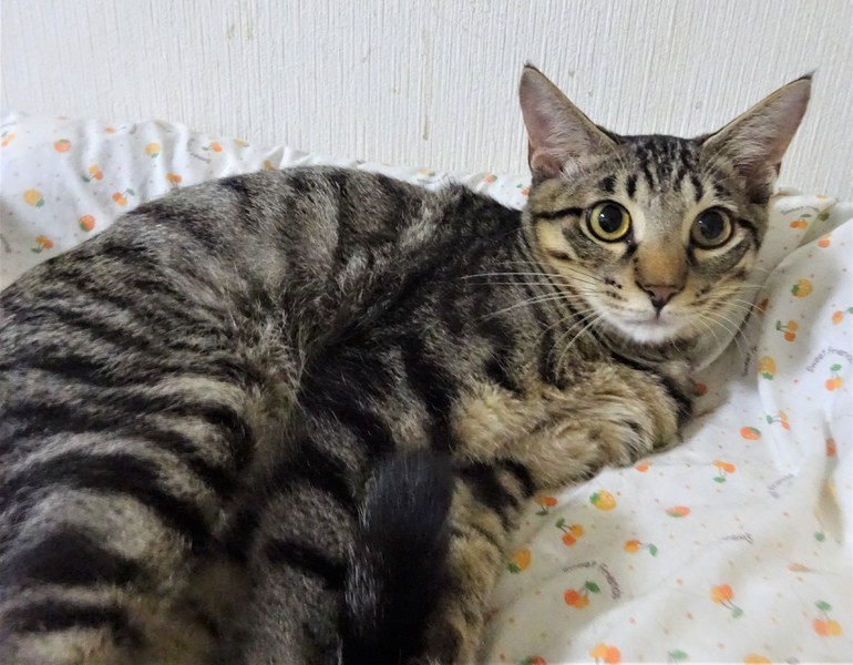 | 特徴(性格など) | 仮名: ルカちゃん(メス) 毛色: キジトラ 性格: ビビリですが、威嚇なく抱っこ出来ます。 抱っこすれば甘えられますし、ケージの中にいる時は自分からスリスリしたりしますが、ケージから出ると怖いのか、捕まえるときにビビっています。ご飯が大好きなので、時間になると、ご飯ご飯と鳴きます。猫飼い初心者の方には少し扱いにくく、怖がりの猫に慣れているような、猫飼い経験者の方のほうが良いかと思います。猫にも人にも、ケージをお使いになる事をお勧めします。 ノミ取り済 検便済 駆虫済 3種混合ワクチン済 避妊手術済 猫エイズ・白血病ウィルス検査はともに陰性 |