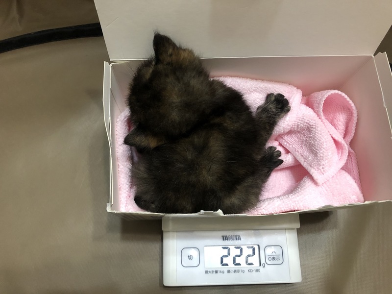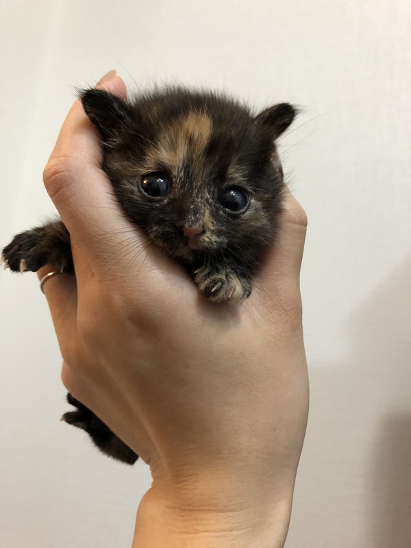 | 里親募集する理由 | 母猫に置いていかれたのか広い空き地の真ん中に一人で顔を地面に着けて一日中鳴いており、夜遅く見かねて保護しました。低温症がありましたが今は回復して元気です。(シャンプー済み、虫下投薬済み。) | ||