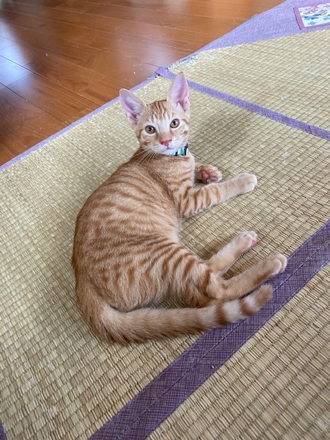| 特徴(性格など) | 茶トラ柄。 元気な男の子、人大好きで他の猫とも仲良く出来ます。 一緒に寝たがります。 |