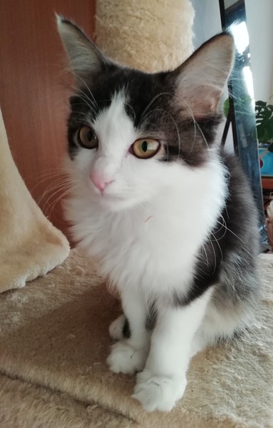 | 特徴(性格など) | 数日大人しいと思いますが、慣れると スリスリ寄ってきて甘えん坊 可愛い性格です 今の所噛んだりしません 爪とぎはキャットタワーでとぎます ハチワレ 少し鍵しっぽ 俊足 快便 トイレは砂が好きです |