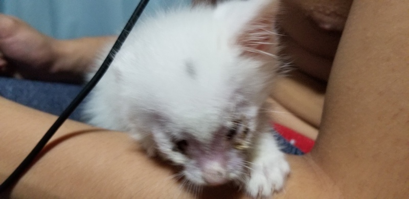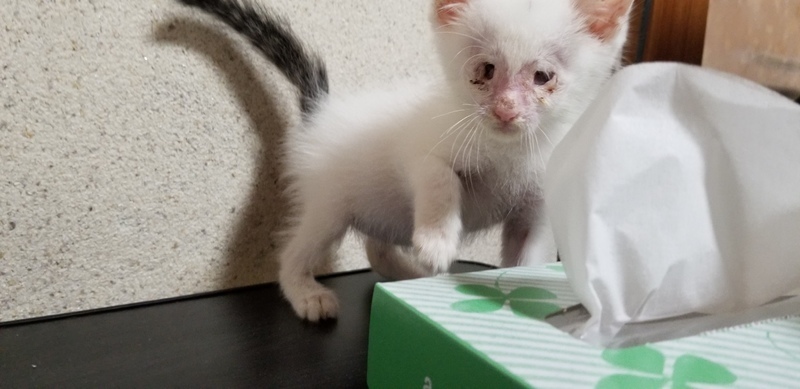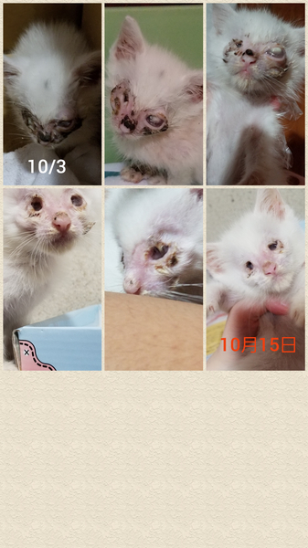 | 特徴(性格など) | 盲目ですが、元気いっぱい!ご飯はもりもり食べます! 全体的に白毛で、頭にワンポイント黒い模様、尻尾が黒です。 動いている様子⬇ https://youtu.be/qPLBiWWEYks ☆トイレは8割ほど大丈夫です。おしっこをたまにシートにしているときがあります。 ☆カリカリ食べれます。 ☆たくさん遊びたいようで、ゲージから出すと少々やんちゃです笑 ※現在目薬による治療が続いています。 |