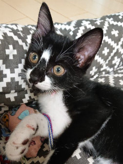 | 特徴(性格など) | ☆★☆★現在お見合い予定がございます☆★☆★ 仮名を『スズカ』と言います。 TNR現場より保護されました。 生後3ヶ月半くらいの女の子です。 他の兄妹と一緒に乳飲み子の時に保護されました。 兄妹は一足先に良縁に恵まれて、幸せ街道真っしぐらです。 愛嬌たっぷりの女の子で、走る姿はジャンプをする子犬みたいに見えるんですよ。 性格は堂々としています。 これだと思ったら猪突猛進タイプです。 ミルクを飲んでいた頃は、私のミルクはまだなの??と、アピールが凄かったです!(笑)。 たくましいスズカちゃん。 ズボンの裾にまとわりついたり、エプロンに潜り込んだりして甘えにきます。 可愛いスズカに会いに来てくださいね。 【医療処置情報】これから実施のも含まれます *健康チェック *3種混合ワクチン接種 (年1回定期的にしております。詳細はお見合い時にお知らせいたします) *ウイルス検査実施(FIV.FeLV共に陰性) *検便実施 *駆虫薬投与(レボリューション、ドロンタール) *マイクロチップ装着 *不妊・去勢手術 |