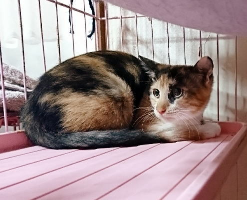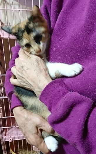 | 特徴(性格など) | 抱っこ大好きな三毛の女の子。 少し怖がりで人見知りもするので、初対面の人にはシャーッと言うこともありますが、もともとは抱っこ好きな甘えっこさん♪ 慣れた保護主さんにはいつも抱っこされていて、自分から抱っこ~と乗ってくるそうです。 新しい環境に慣れるまで最初は時間はかかるかもしれませんが、長い目で見て接してくださる優しい里親さん、探しています。 【健康状態】 健康状態良好です。 ・ワクチン接種済み(2回) ・血液検査済み(エイズ、白血病検査→陰性) ※生年月日について※ このサイトのシステム上の関係で生年月日を記載していますが、実際のはっきりとした日付は不明です |