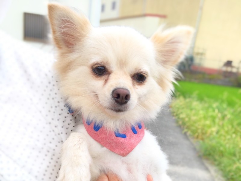 | 特徴(性格など) | チワワとポメラニアンのミックスです。5キログラムです。 1匹飼いが、むいているワンちゃんです。お外に出るとき、しがみついてきます。そこが、とても、かわいいです。元気がよくて、どんどん歩きます。いつも、笑顔で見つめてくれるかわいい女の子、ひかりちゃんに、会いにきてください。 |