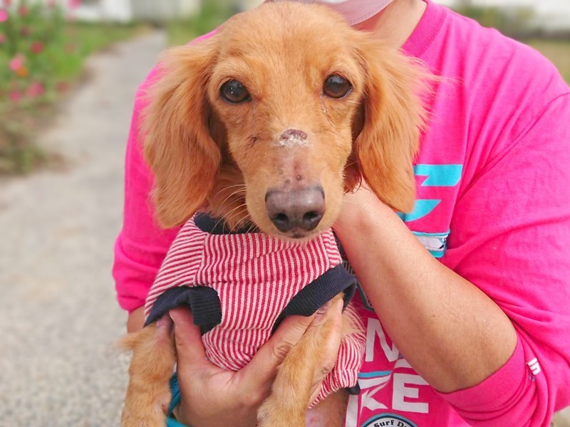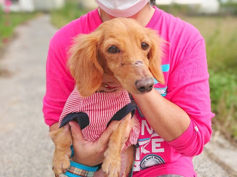 | 特徴(性格など) | 4キログラムの小さめのダックスの女の子です。 少し怖がりさんで甘えん坊です。 散歩では、横について歩きます。 皮膚炎の治療をしています。 とても、賢いので、リーダーシップをとれる人や、子どものように大事に飼って下さる方、お願いいたします。 るみなちゃんに、会いにきてください。 |