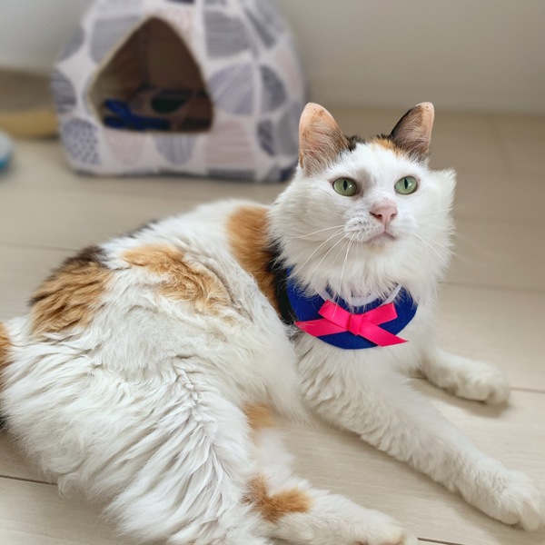 | 特徴(性格など) | 長毛の三毛です。 瞳は薄いマスカット色 被毛はふわふわで触り心地抜群で肉球はピンク❤︎ 性格は落ち着いていて甘えん坊、レイラちゃん、と声をかけるとニャーんと可愛い声でお返事してくれます。 初対面の人にはちょっと人見知りしてしまいますが、慣れるとゴロゴロ甘えてきます。 用意した爪研ぎをちゃんと使えて壁やカーテンで爪研ぎはしません。 猫トイレも完璧です。 半日程度のお留守番も可能です。 健康状態 3種混合ワクチン接種済み(証明書有) 血液検査済(エイズ、白血病共に陰性 証明書有) ノミダニ内部寄生虫駆虫済 体調は至って良好です。 ドライフード、ウェットフード両方とも好き嫌いなく食べています。 |