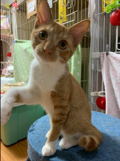 | 特徴(性格など) | ☆★☆★現在お見合い予定がございます☆★☆★ 仮名を『かい』といいます。 TNR現場より保護されました。 茶白の男の仔。 個性的な尻尾は中位の長さで波打っています。 甘えん坊将軍のデレ助。 まんまるなお目々が特徴的で、お召し物は胸〜お腹側が真っ白。背中側〜尻尾が茶色です。 常識の範囲内のお留守番もバッチリですが、ジャラシ命ですので、たくさん遊んであげてくださいね! 猫と初めて一緒に暮らす方でも、お迎えしやすい仔だと思います。 かいは4兄弟でしたが、2頭は一足先に赤い糸をニギニギ。幸せな家猫生活を送っています! 兄弟の『うみ』と二頭一緒のお迎えも大歓迎です。 【医療処置情報】これから実施のも含まれます *健康チェック *3種混合ワクチン接種 (年1回定期的にしております。詳細はお見合い時にお知らせいたします) *ウイルス検査実施(FIV.FeLV共に陰性) *検便実施 *駆虫薬投与(レボリューション、ドロンタール) *マイクロチップ装着 *不妊・去勢手術 |