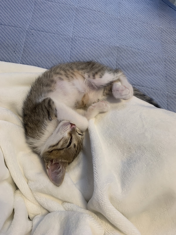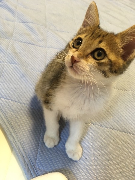 | 里親募集する理由 | 9月の頭に猫風邪で目が閉じた状態の痩せた子猫が車道をヨロヨロと横断していたため、保護しました。最初は元気もなく痩せた状態のため元気になるまで保護していました。 当方は仕事で家を開けることも多く、まだ子猫なので優しくてたくさん構って貰える方に飼ってもらいたく里親募集させて頂きました。 猫の名前:アメちゃん(仮名) 色柄:サバシロ? 性別:♀ 月齢: 生後2〜3ヶ月(推定誕生日 2020年8月くらい) 保護日:2020年9月6日 ワクチン接種日: 1 回目 2020.9.26、2回目 2020.10.26予定 ウィルス検査日:1回目 2020.9.26 ウィルス検査結果: 猫エイズ 陰性 猫白血病 陰性 不妊手術: 未 健康状態:かなり元気で走り回ってます。ご飯もよく食べて、うんちもしっかりしてよく寝ます。 |