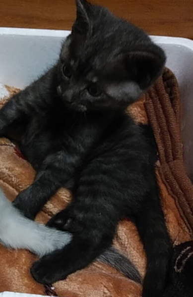 | 特徴(性格など) | 黒っぽいですが ダークグレーと混じったような色です 最初は警戒してましたが、 すぐにじゃれるようになり、元気いっぱいに 遊んでます トイレの場所も覚えて、ミルクもキャットフードも食べてます。 すごくお利口な子猫ちゃんだと思います。 |