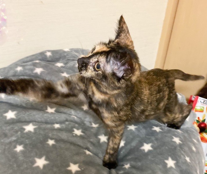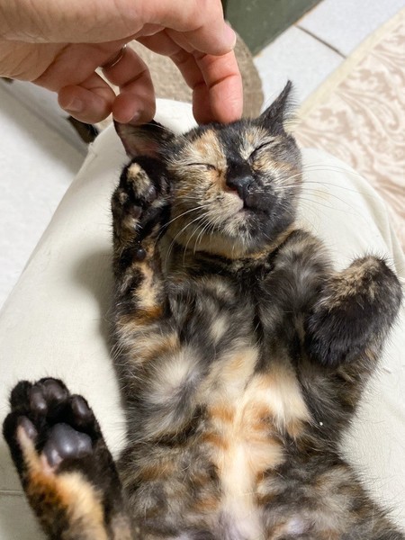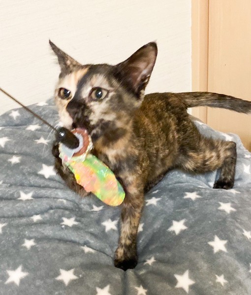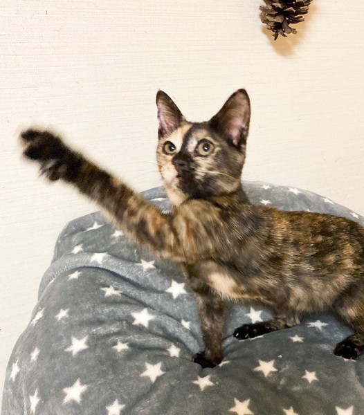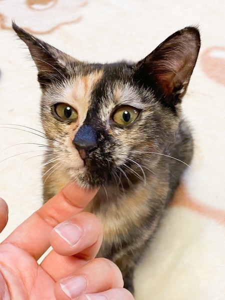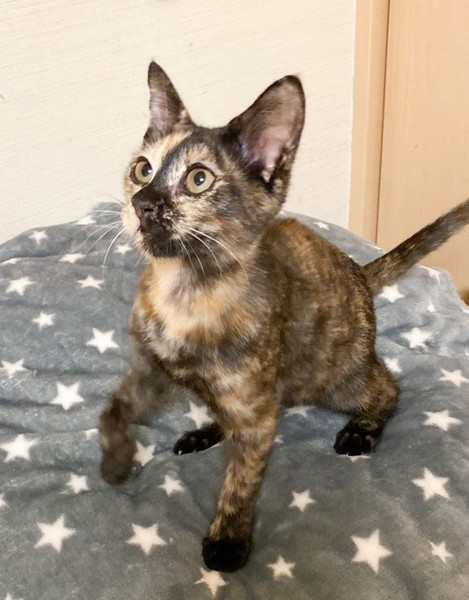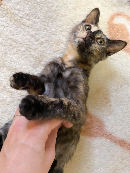 | 特徴(性格など) | 肩乗り大好き「ラクレット」ちゃん♡ 他の猫ちゃんと一緒にいると、好奇心旺盛で、何?なにっ?! みんながわしゃわしゃしてると、直ぐに背後から肩乗りして遊んでアピール♪ 陽気なサビ猫さんになりました♪ 現在、ドライフードを置き餌として、パウチを一日2回与えています。 <推定誕生日:8月中旬> |