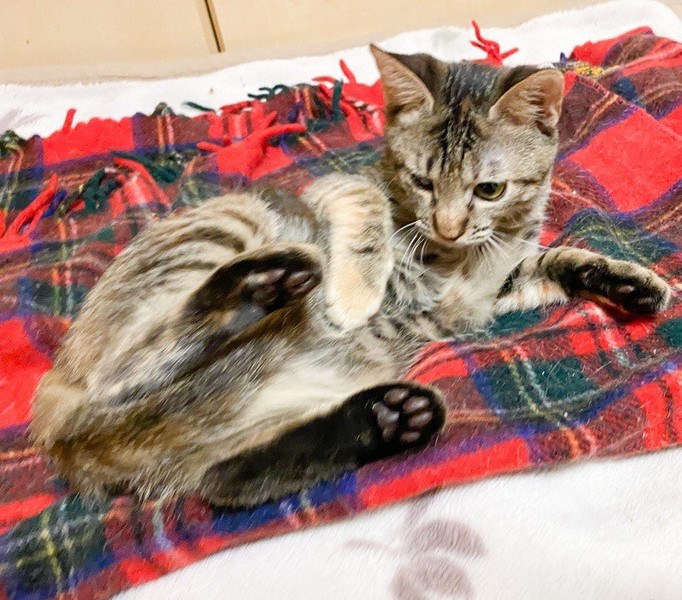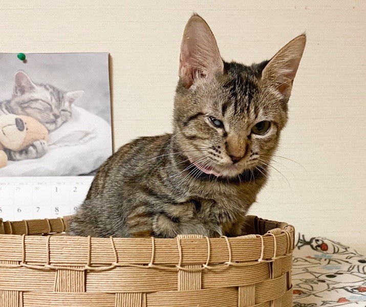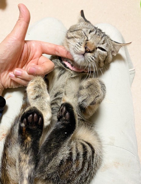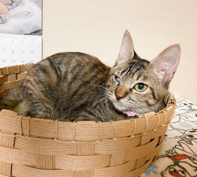 | 特徴(性格など) | 穏やかな甘えっコ「あまおう」ちゃん♡ 物静かな甘えっコちゃんです。 保護時、自身で爪で目を傷つけ、白濁が残ってしまいましたが、日常生活に支障なし!な元気な女のコ♪ 現在、ドライフードを置き餌として、パウチを一日2回与えています。 <推定誕生日:7月始め> |