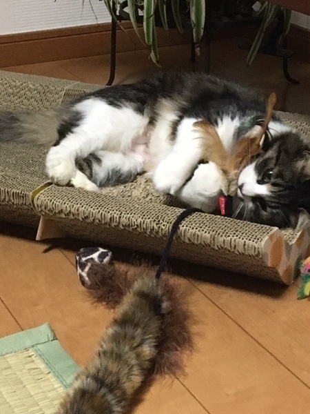 | 特徴(性格など) | 半長毛のキジ白、柔らかな毛並みで触り心地はマシュマロのようです。 小顔の割に脚は太く、長いフサフサの尻尾が特徴です。 元野良猫ちゃんですが、性格は友好的で穏やか。とても人懐こく、自ら挨拶に近寄ってきてくれます。食欲旺盛で遊ぶこと大好きなので、このふたつを満たしていれば夜鳴きもなく静かに過ごしています。日中もとても静かに過ごしており、保護して1ヶ月すっかり家猫ちゃんを満喫しています。窓辺に行っても静かに外を眺めています。鳴き声はそれほど大きくなく、控えめです。野良だったせいか、エアコンの作動音には動揺して鳴き出すことがあります。トイレ、爪研ぎは専用のものできちんとできます。 粗相もありません。推定2.5歳、体重3.1キロ。 |