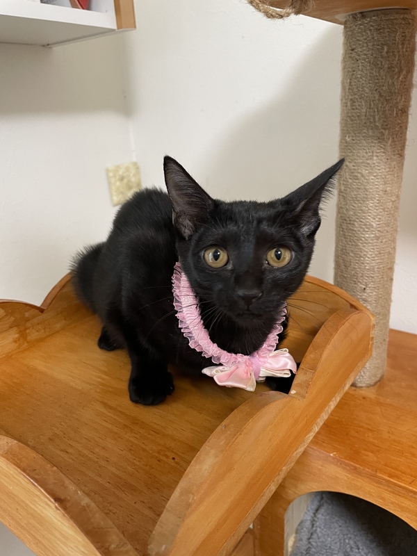 | 特徴(性格など) | 黒色のメス猫ちゃんです。 兄妹で仲良くいつも遊んでいます。 ボランティアさんにミルクから育ててもらった子です。 初めて見る方には怖がりますが慣れてくれます。 是非すみれちゃんに会い来て下さい。 |