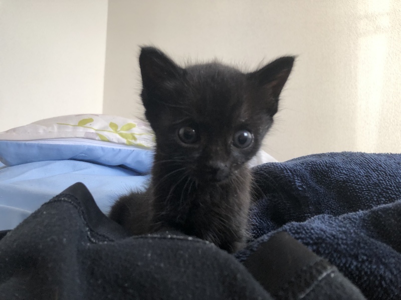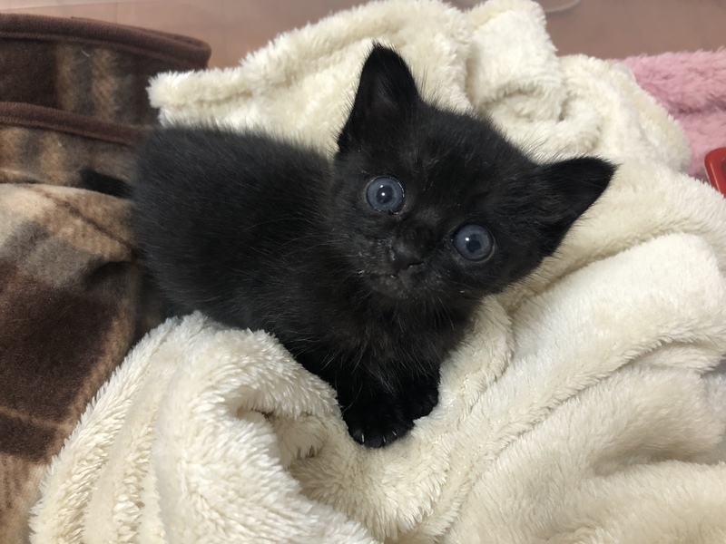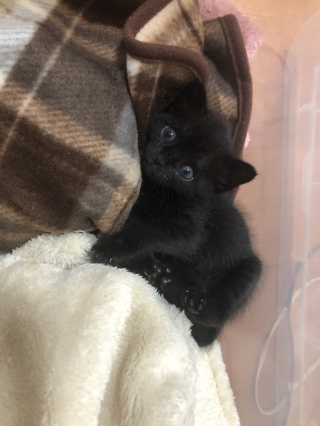 | 特徴(性格など) | 白髪混じりの黒猫ちゃんです。 空腹の時だけよく鳴きますが、基本は静かです。 人懐っこくよく遊びます。 |