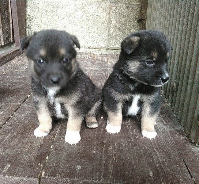 | 特徴(性格など) | ★長男 お顔も真っ黒 お腹はツキノワグマの様に白が少し入ってます。 ★次男、三男は黒いシバ犬の様に顔と足、胸に茶が入っています。 |
