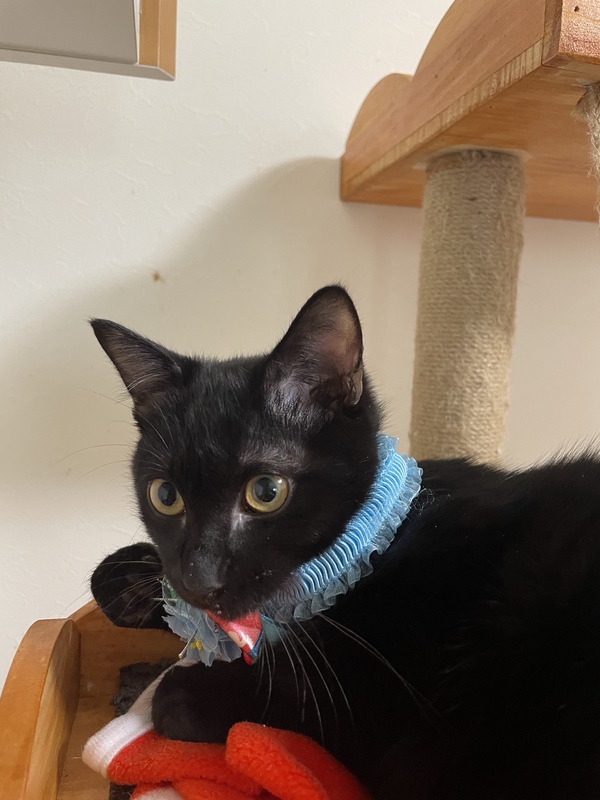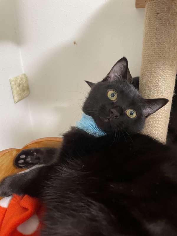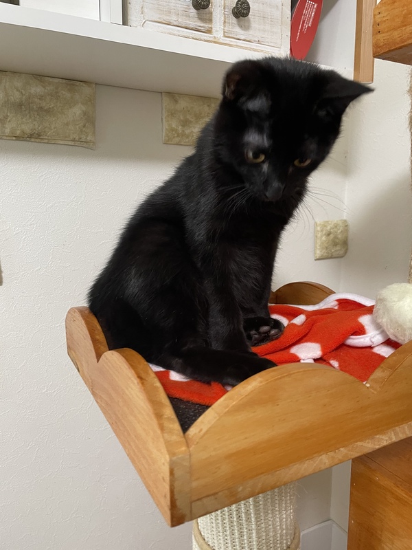 | 特徴(性格など) | 黒猫の男の子です。 保護当時は200gちょっとしかなくミルクボランティアさんに託しました。 無事に成長してくれ、スクスク元気に、育っています。 シッポが短く曲がっています。 現在かなりの頭数を保護しています。 実際に見て色々な子と触れ合って下さい。 よろしくお願いします。 |