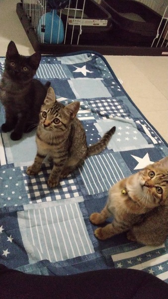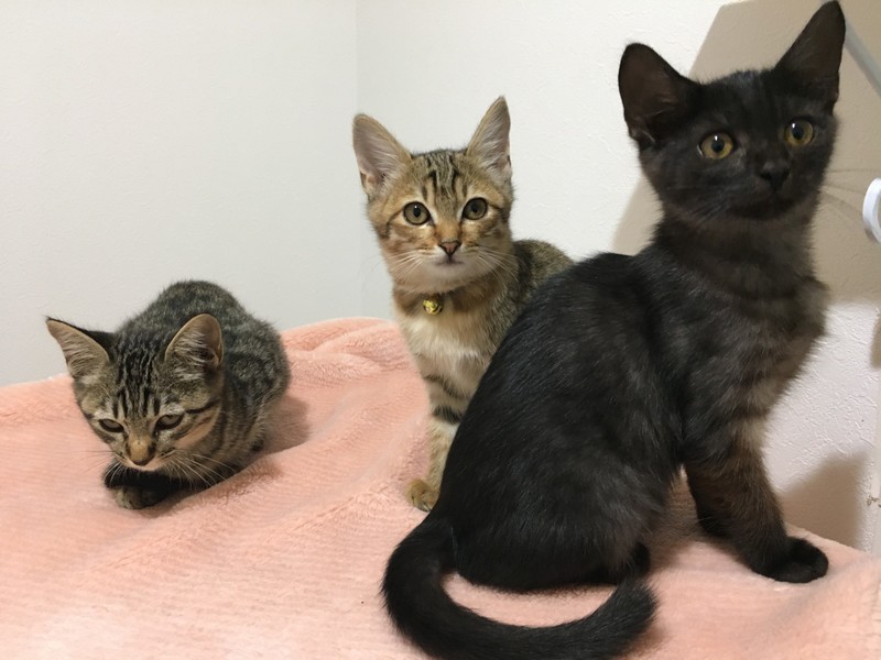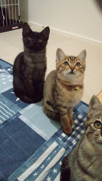 | 特徴(性格など) | クロネコ 男の子 キジトラは2匹とも女の子です。 とても仲良しで活発です。 |
