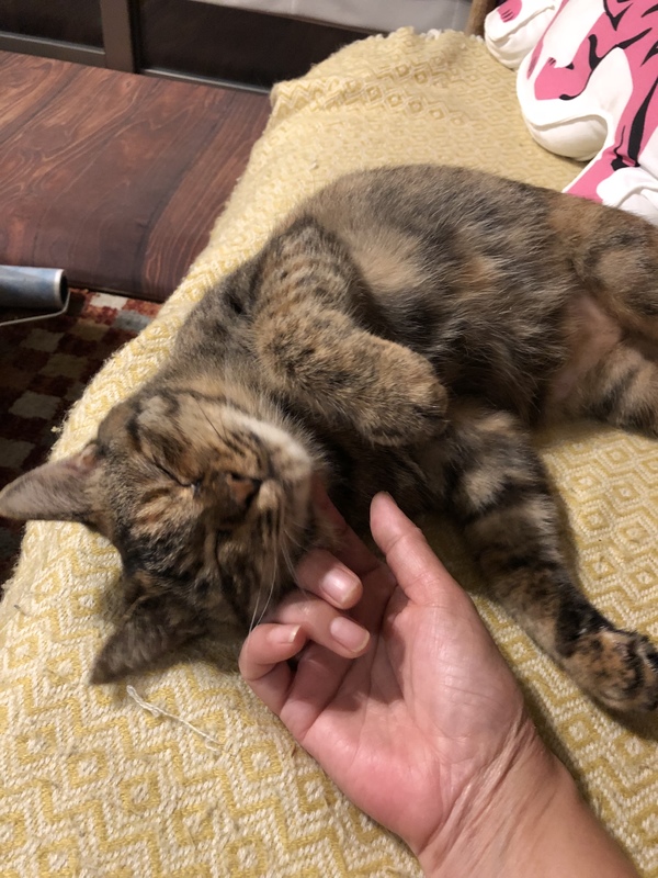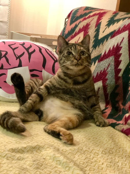 | 特徴(性格など) | 麦わら柄のお茶目な子です。 お話する時にこちらをじっと見て訴えます。特に空腹の時は必死です。甘えん坊で常に手の届く範囲に生息しています。他の猫との協調性も持っている子なので多頭飼いでも問題ないと思います。 |