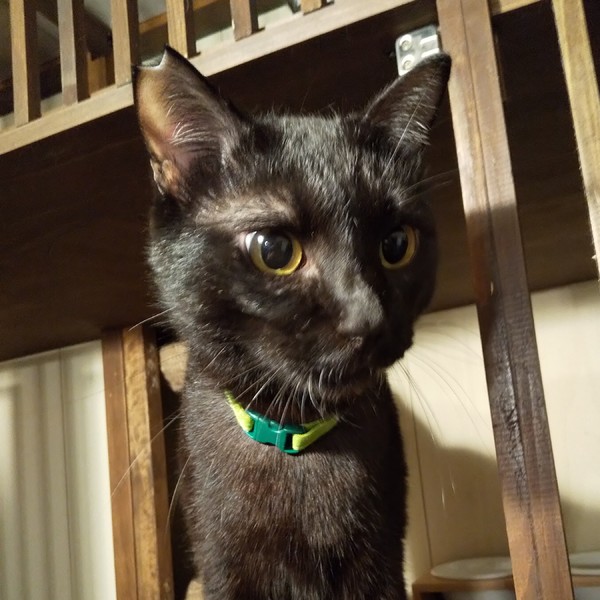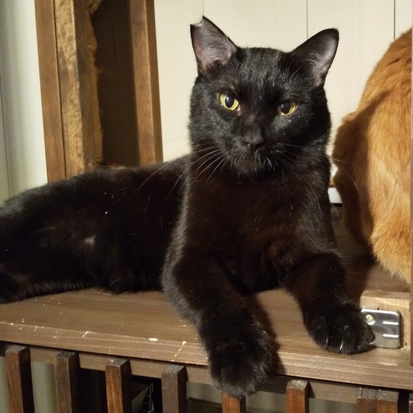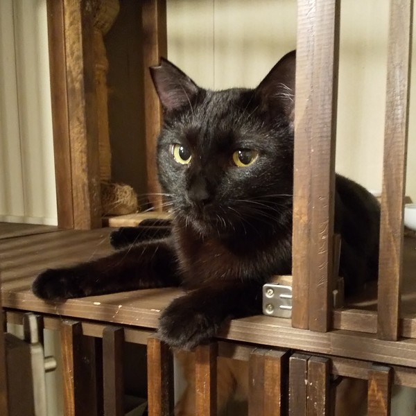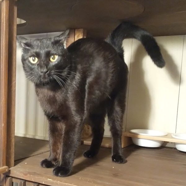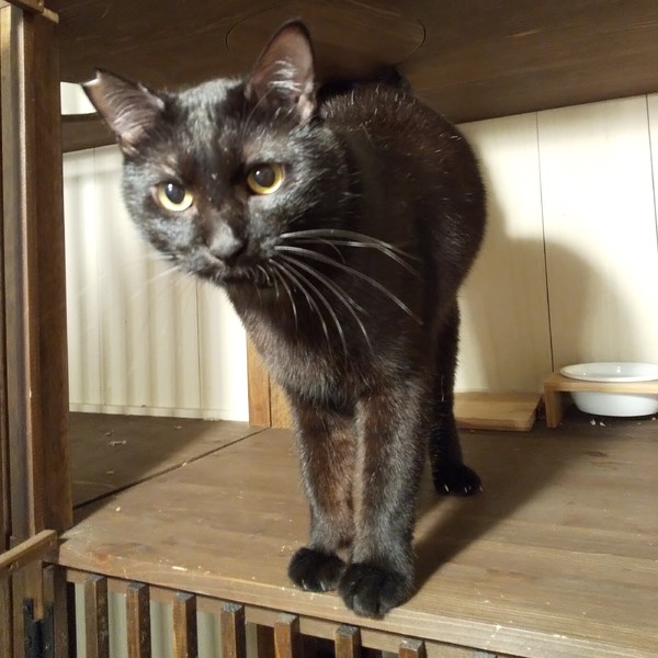 | 特徴(性格など) | 仮名:はやて 毛色:黒 瞳の色:金色 尻尾:長くて真っ直ぐ 性格・特徴:光の加減で黒からこげ茶色のグラデーションに見え、とても美しい被毛です。 が、食事が改善して栄養が行き渡ると、黒々としていく可能性が高いと思います。 見た目はオスの黒猫らしい堂々とした風格で、若干コワモテです。 性格はとてもナイーブでかわいらしく、ギャップ萌えしてしまいます。 最初はとても臆病で1週間以上ハウスに引きこもっていましたが、手を入れて触るとお腹を見せて喜んでくれました。 今ではすっかりスリスリゴロゴロ、手をもみもみしながら甘えてくれるラブリーな子です。 あまりスキンシップをとらずに育ったため、初対面の人や里親さん宅に行ってしばらくは、甘えるようになるまでに時間がかかると思います。 長い目で見守ってあげてください。 これまで辛い思いをしてきた分、愛情たっぷりに育てていただける方を希望します。 最初だけ、ほかの猫に対して威嚇があったので、先住猫ちゃんがいるお宅はおすすめしません。 仲がいい子と2匹で迎えていただけるとありがたいです。 システムトイレのしつけ済み。 右耳に桜カットあり。 |
