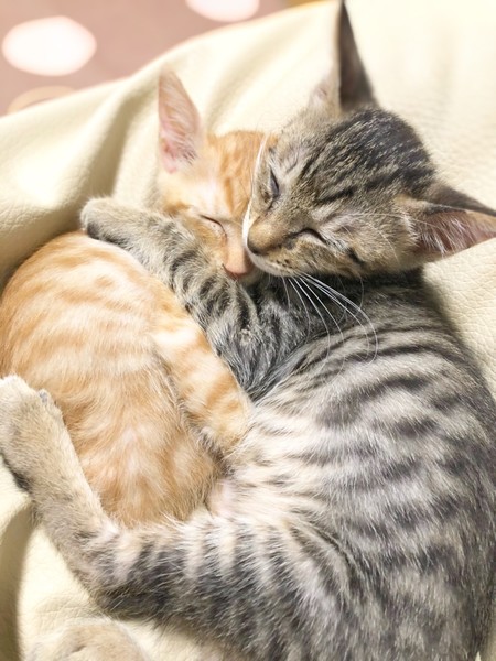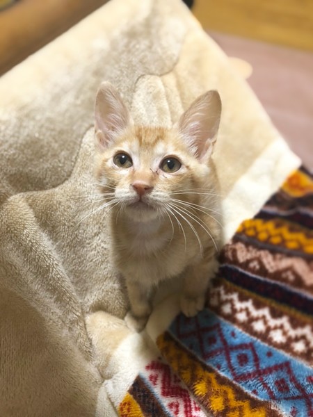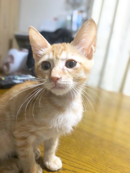 | 特徴(性格など) | 茶トラの女の子です。 保護当時はまだ目も開いていない状態でした。 ミルクボランティアさんに育てて頂き大きくなりました。 人が好きで座っていると膝に乗って来てくれます。 女の子なので現在は、とわくんより少し小さいです。 できるだけ兄妹で飼って頂ける方を募集していますが 1匹でもご相談下さい。 元気にしています。 もうすぐエイズ白血病検査、ワクチン接種をする予定になってます。 |