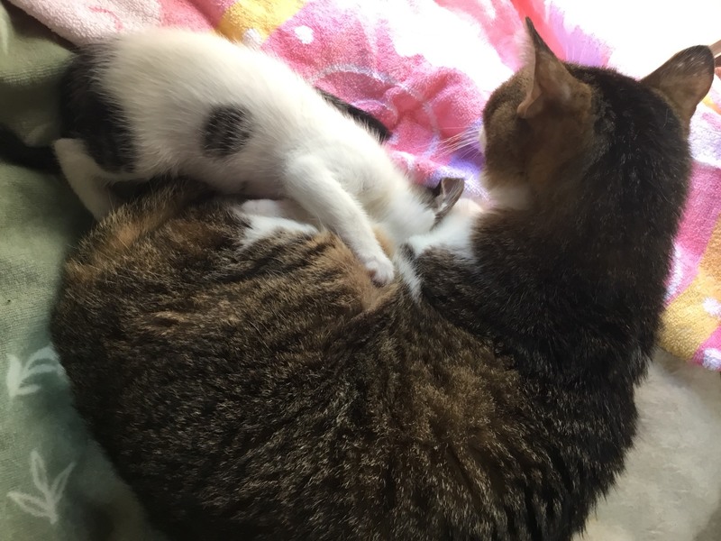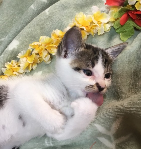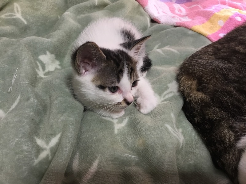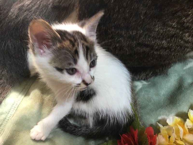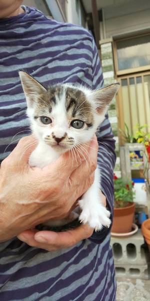 | 特徴(性格など) | 白黒 可愛い子猫 よく食べ、よく遊びよく寝てスクスク育ってます。 まだママが恋しいのか、成猫に甘えてます。 |
