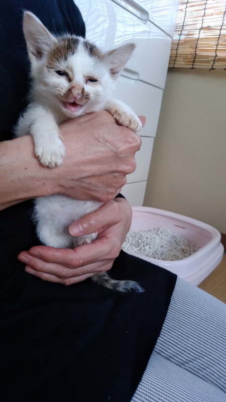| 譲渡費用(医療費、交通費など) | 発見時目やにが酷かったのとかなり弱っていたため、動物病院へ連れて行き、注射して貰い、一週間分のお薬を貰いました(少なくともお薬投与中はお引き取り頂けないかもしれません)。 病院代、お薬代は頂きません。 遠い場所へのお届けの場合は交通費を頂くかもしれません。 |