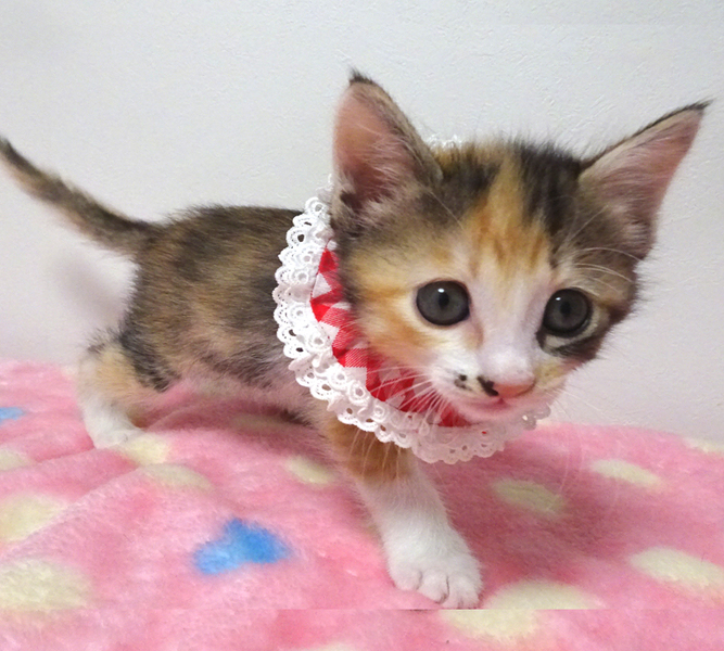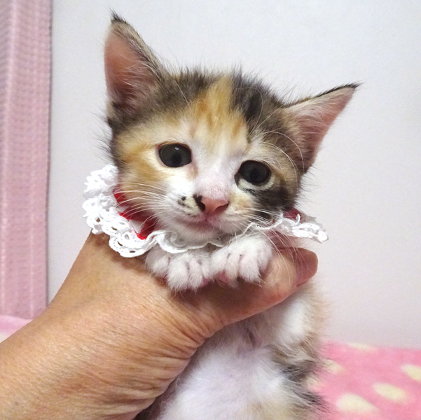 | 特徴(性格など) | 【猫の仮名】 未友(みゆ)ちゃん (担当 松嶋) 【毛色・柄】 三毛、アニメ風の優しい顔、長いシッポ 人に育てられたので大変人慣れしています♪ 猫を初めて飼う方でも大丈夫です♪ 走っても大丈夫なペット可のお住まいで、猫だけのお留守番が長時間でないご家族を募集しています。 |