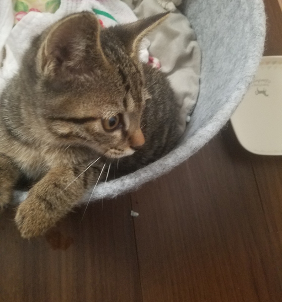| 里親募集する理由 | 家の裏で鳴いており、ケガをしているようだったので保護しました。 当方はアレルギーで長期の飼育ができないため里親を募集いたします。 |