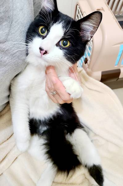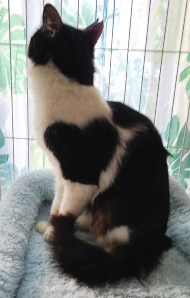 | 特徴(性格など) | 室内にいることに安心しているようで、早くケージから出してくれと鳴きますが、撫でると落ち着きます。 左肩にハートの模様をつけています。 TNRの予定でしたので、耳カットしてあります。 猫エイズ、猫白血病ウィルス陰性。 |