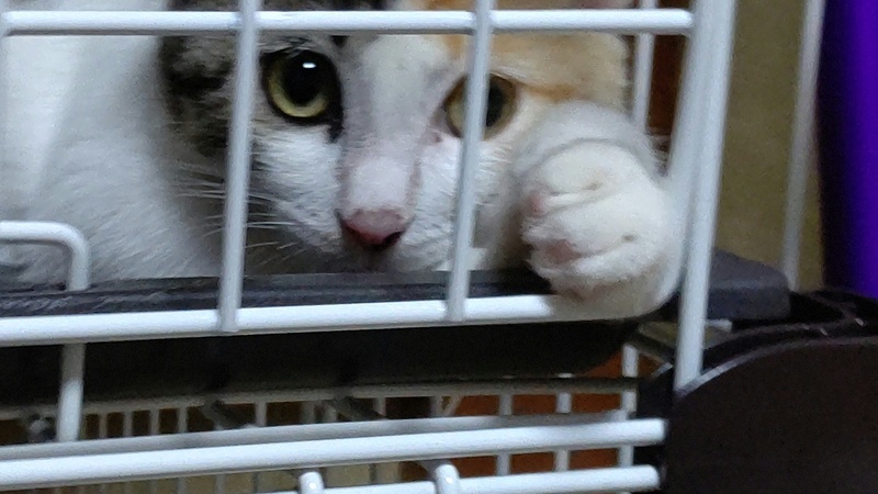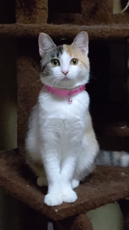 | 特徴(性格など) | 茶トラとサバトラと白のミックス。 外の生活が長かった為か人間を警戒して、触らせて貰えるまで2週間掛かりました。 今は、オモチャで遊んだり撫でると甘えてきますが、まだ警戒して近づくと逃げます。 猫は好きでウチの子達と追い駆けっこをしています。 |