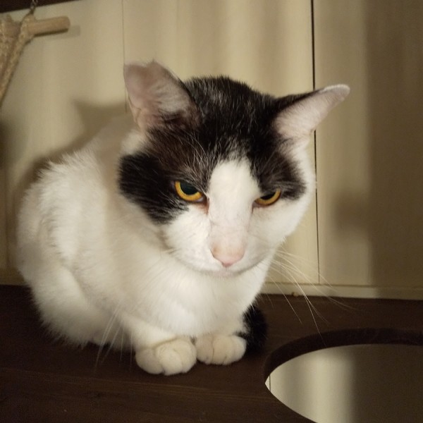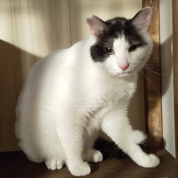 | 特徴(性格など) | 仮名:ふぶき 毛色:白黒 瞳の色:薄茶色 尻尾:長くて真っ直ぐ 性格・特徴:大きなむくむくの体に、むすっとした不機嫌な顔が何とも言えずかわいいです。 白が多めで頭と尻尾が黒く、尻尾の先が白いのが特徴。 ガタイがいいので強いはずですが、ケンカを売られても決して手を出さず、物陰に隠れるようなおっとりしたやさしい子です。 あまりスキンシップを取らずに生きてきたので、まだ触られるのは得意ではなく、近くに寄っては来ますが、触ろうとするとするっと避けて離れてしまいます。 甘えるようになるまでにはまだ時間がかかるので、長い目で見守ってあげてください。 これまで辛い思いをしてきた分、愛情たっぷりに育てていただける方を希望します。 先住猫ちゃんがいるお宅でも大丈夫ですが、同じ多頭崩壊宅から来た子と2匹で迎えていただけるとありがたいです。 システムトイレのしつけ済み。 右耳に桜カットあり。 |