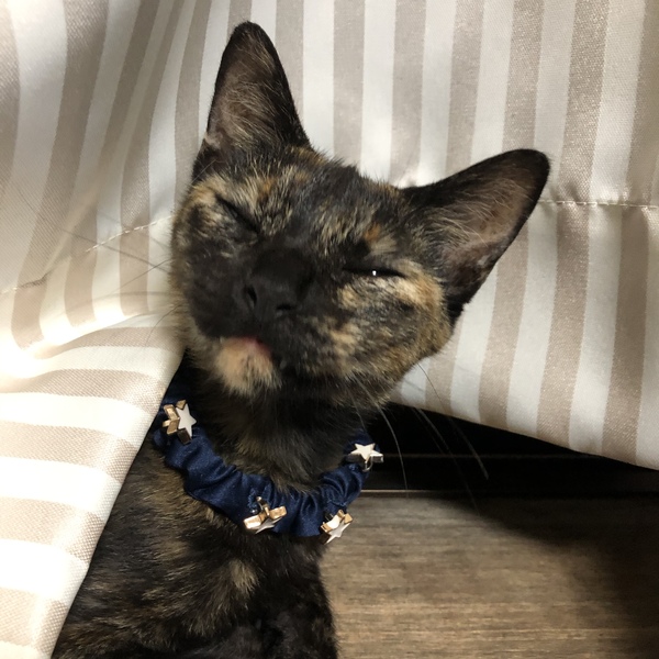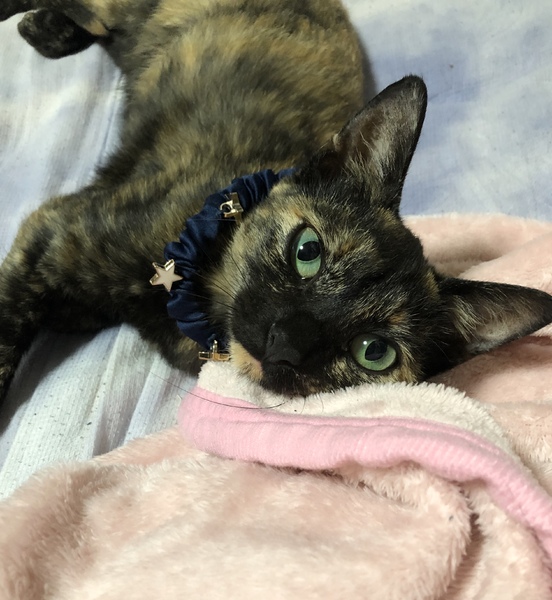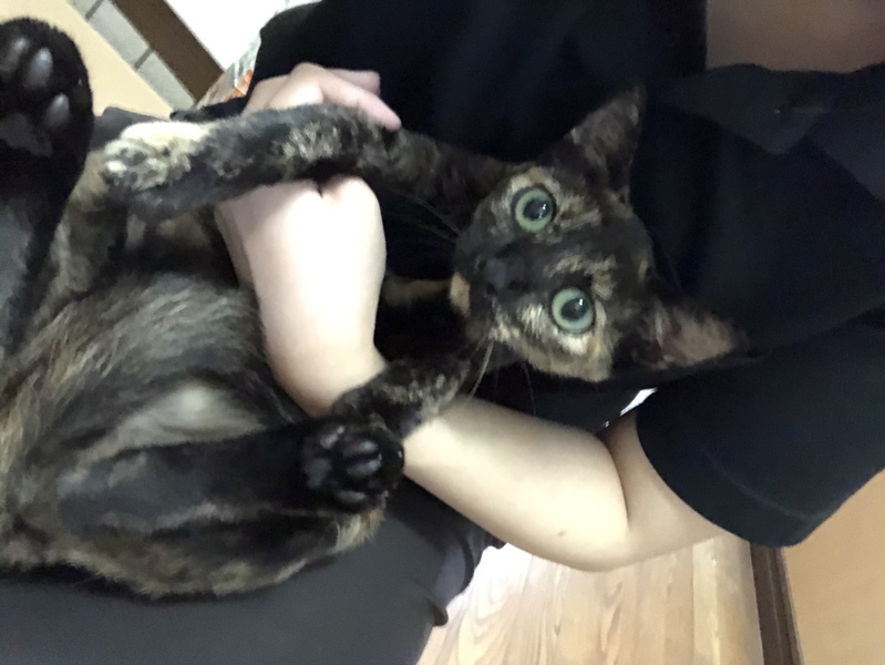 | 特徴(性格など) | 現在は推定約1歳位のメスのさび猫です。 身体は小さめです。 仕事の時間と夜中はケージで寝かせて居ますが、大人しく過ごしています。 抱かれる事は全然嫌がりません。人を引っ掻いたり威嚇したことはありません。 人間大好きです… 家の中に入れて2日程で打ち解けてくれました。 トイレも覚えてくれました。 泣き声が子猫みたいで、よくすりすりしてくれます。喉もよく鳴らしてくれて家猫に向いていると思います☆ 部屋に入れても飛び回ることはなく布団の上でくつろいで過ごしてくれます! ☆サビ猫は人なっこく大人しく賢い種類のようです。 コロナでストレス溜まってもこの子を見ると忘れちゃうくらい可愛いです(。-_-。) |