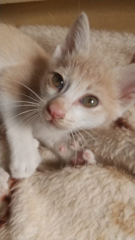 | 特徴(性格など) | クリーム色がかわいい男の子です 撫でるとゴロゴロいってます キジシロとよくプロレスしてます |