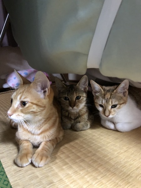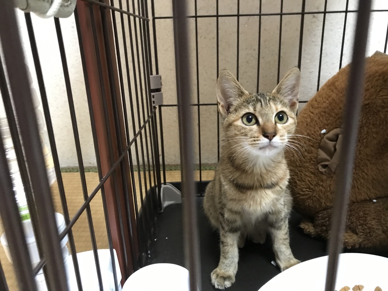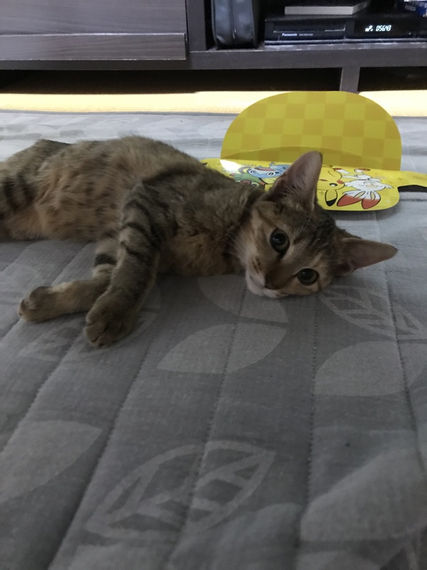 | 特徴(性格など) | *色柄 キジトラ *人馴れOK(最初は怖がっていましたが、割とすぐに慣れました) *抱っこできます(5歳の子供でも抱っこ可能です) *甘えん坊(お膝大好き。スリスリしてきます) *トイレ(うんち、おしっこ両方)は決まったところでします *狭い暗いところが好き *高いところがすき(カーテンをよじ登って、カーテンレールへ上ります) *お外が好きなのか、窓を開けるとお外をよく見ています *首回りを撫でられるのが好き *シャワーの時は、鳴きましたが暴れませんでした *エサは1日2回(朝・晩)あげています(子猫用ミルク・猫用鰹節のおやつもあげています) |