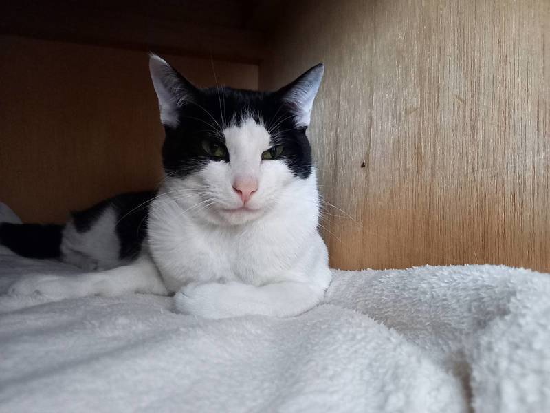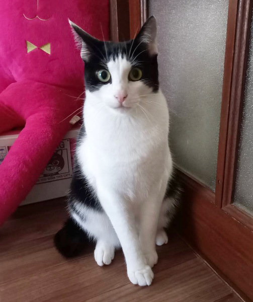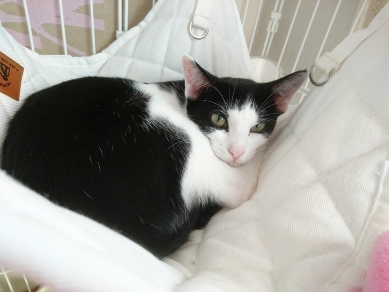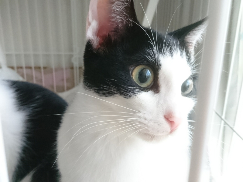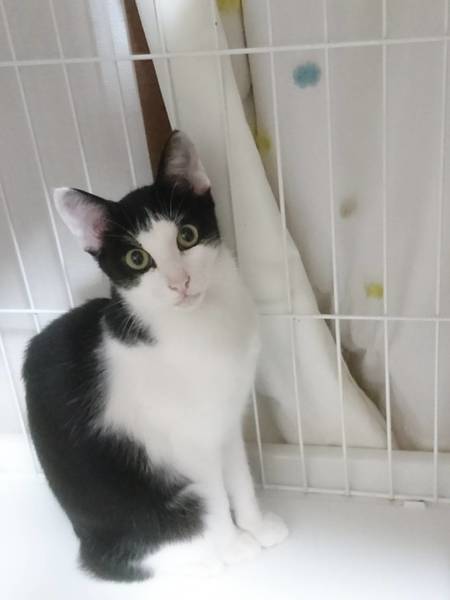 | 特徴(性格など) | 白黒 家猫生活には慣れてきましたが、人慣れは、修行中です。 ごはんをあげる者にはスリスリしたり、ナデナデもできたりと、少しずつ慣れてきています。 おもちゃで遊ぶのが大好きで、元気いっぱいです(^^) |