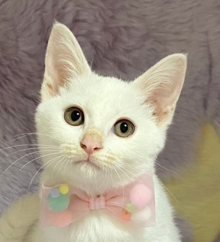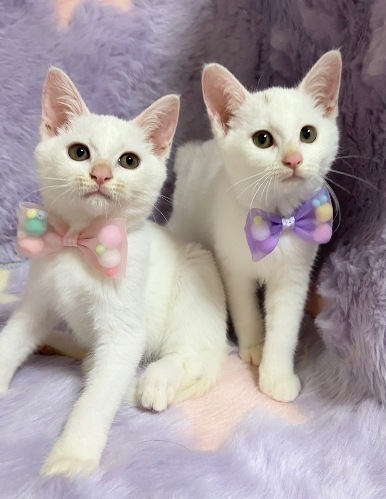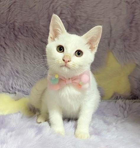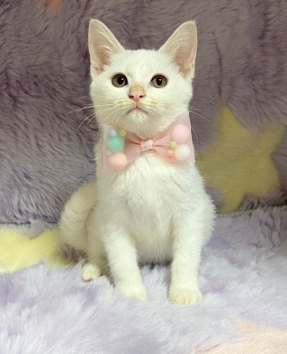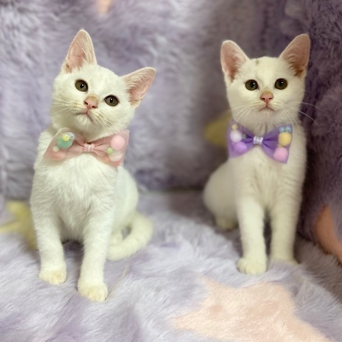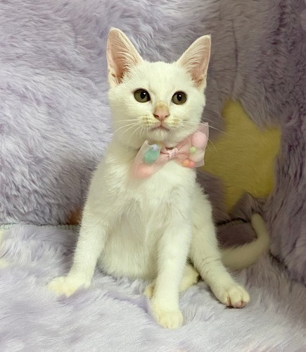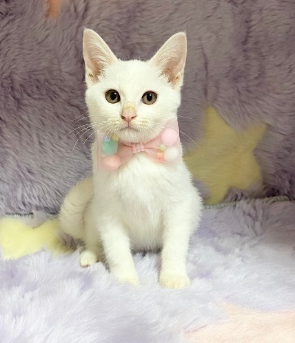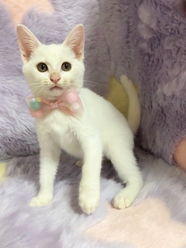 | 特徴(性格など) | 【仮名】プティーちゃん 【性格】まっちろちろのスッキリバディーのプティーちゃん♪ しばらくの間病院にお泊りしていたのでまだきちんとした性格はわからないですが 遊び盛りのおてんばさん☆ ナデナデが大好きで姉妹のクリンチちゃんと手の取り合いをするほどです♪ でも、二人ともとっ~ても仲良し! まだまだ幼く遊びの中で学ぶことが多い為姉妹のクリンチちゃんか 同世代のお友達のお迎えをお願いします。 ※1ピキ譲渡不可 |