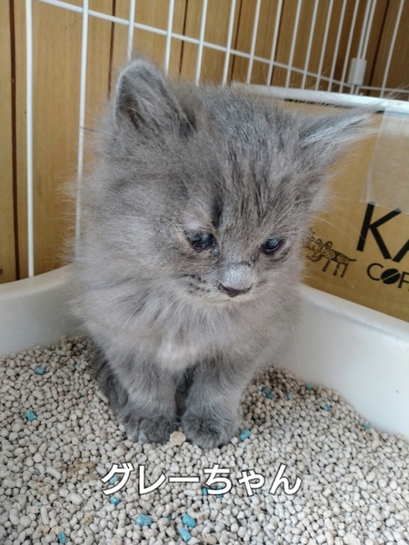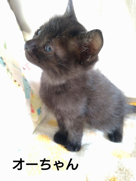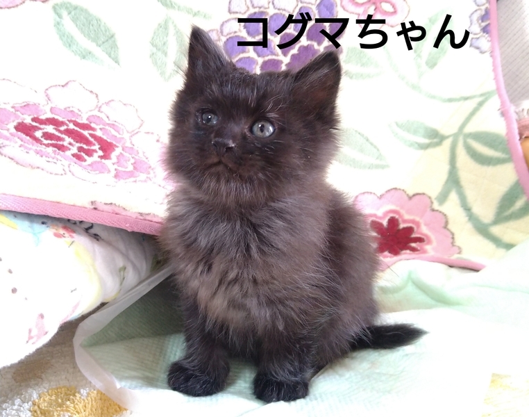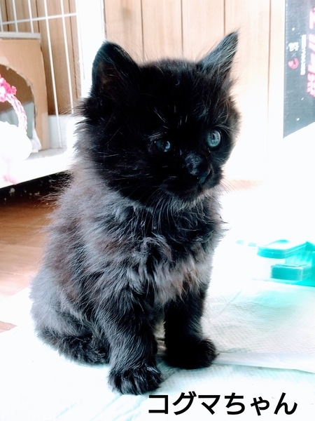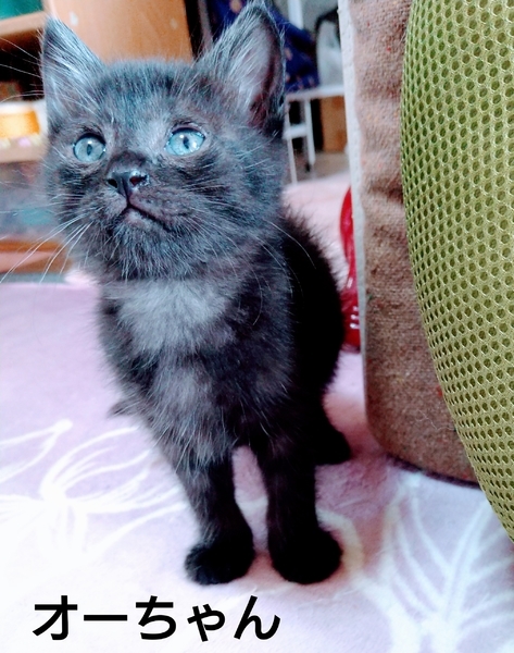 | 特徴(性格など) | 母猫は短毛黒猫、父猫はわかりません。 2020/10/29現在生後一か月一週の兄弟です。 【コグマちゃん】長毛黒メス、 愛嬌のある顔 大きめです。人を怖がらずおとなしくて優しい子です。 【オーちゃん】短毛オス。黒っぽくてうっすら縞があります。成長後どんな色になるかわかりません。いちばん小さいけどよく食べます。トイレで大小しています。 【グレーちゃん】ふわふわの長毛グレーオス。最初は人を怖がって逃げ回っていましたが、徐々に慣れてきました。 3匹ともとても元気です。もこもこでかわいいです! よく食べて、じゃれたり毛づくろいしたり、仲良くコロコロ転がっています。 動物病院で3匹とも健康なこととノミがいないことを確認しました。 |