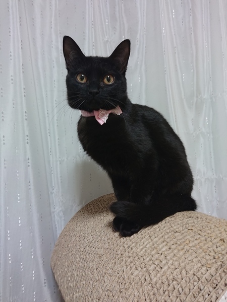 | 特徴(性格など) | 2020.8.8生まれ(推定) 毛色:黒 尻尾がスーッと長く、ツヤツヤな毛並みが素敵な女の子。子猫らしく元気に走り回って、遊んでいます。 大人猫が大好きで、控えめな声でウニャウニャ鳴いてかわいく甘えています。 ちょっぴり臆病なティオ。ナデナデされるとゴロゴロいっちゃうし、手もペロペロしてくれますが、抱っこはまだ怖いようです。普段は人間と一定の距離をとって行動しますが、じっとしている時は近くに寄って来てくれます。ぐっすり寝ている時は、触りたい放題です♡ 食欲は旺盛!! ゴハンの時間になると、普段出さない大きな声で鳴いて一生懸命アピールします。その時ばかりは人間よりゴハン!!近くから離れません笑 そんなティオと、ゆっくり距離を縮めて下さる優しい里親様を募集しています! |