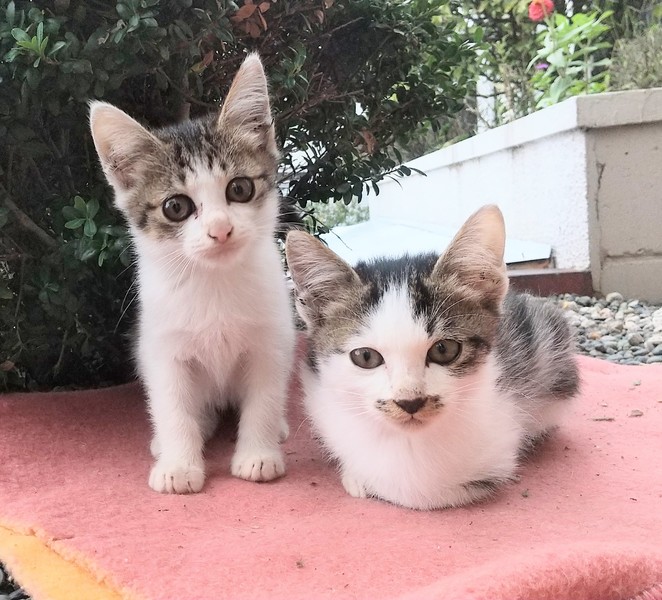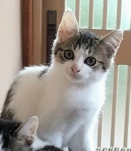 | 特徴(性格など) | 2匹共白キジ、推定3ヶ月です。鼻の下に模様がある方がオスの「はな」、ない方がメスの「ちび」です。「はな」はおっとりシャイボーイ、「ちび」は小悪魔JK風。まだおさわりさせてくれませんが、ご飯(カリカリ)とちゅ~ると猫じゃらしは大好き!そういう時だけ近づいてくる現金な奴らです。ですので、人なれするのも時間の問題かと思います。 | ||