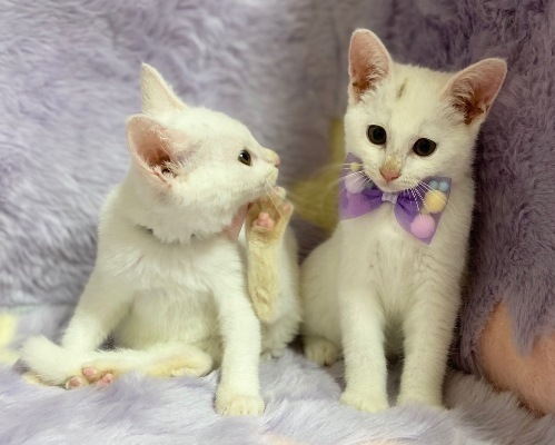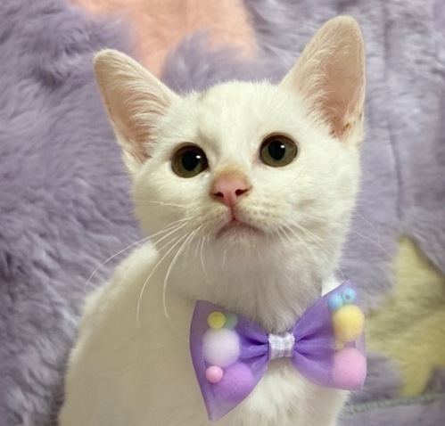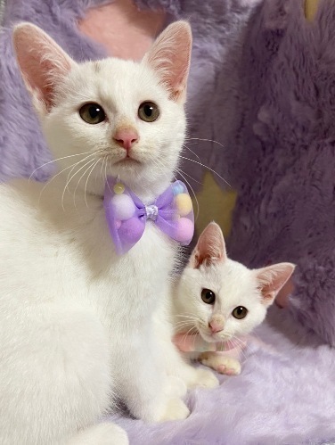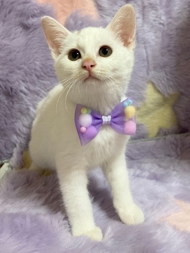 | 特徴(性格など) | 【仮名】クリンチちゃん 【性格】まっちろちろのコロコロバディーのクリンチちゃん♪ チャームポイントはくるんっとした尻尾☆ しばらくの間病院にお泊りしていたのでまだきちんとした 性格はわからないですがちょっとだけ慎重派で遊び盛りのおてんばさん☆ ナデナデが大好きで姉妹のプティーちゃんと手の取り合いをするほどです♪ でも、二人ともとっ~ても仲良し! まだまだ幼く遊びの中で学ぶことが多い為姉妹のプティーちゃんか 同世代のお友達のお迎えをお願いします。 ※1ピキ譲渡不可 |