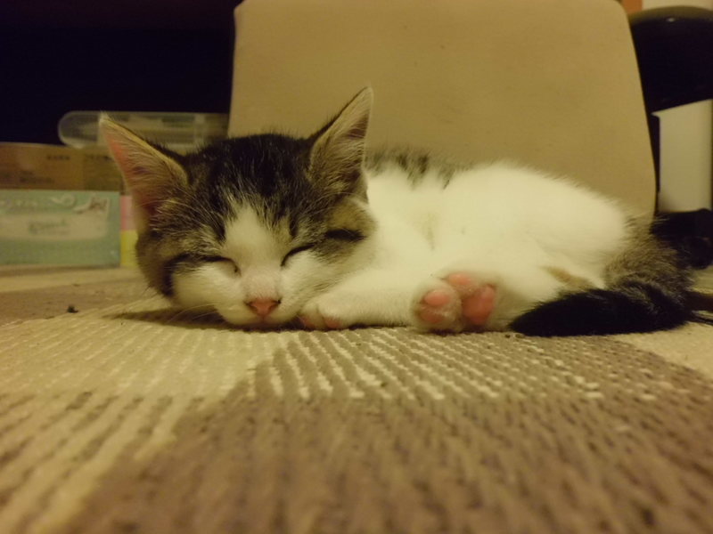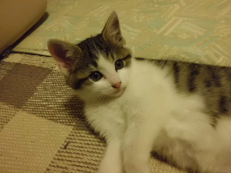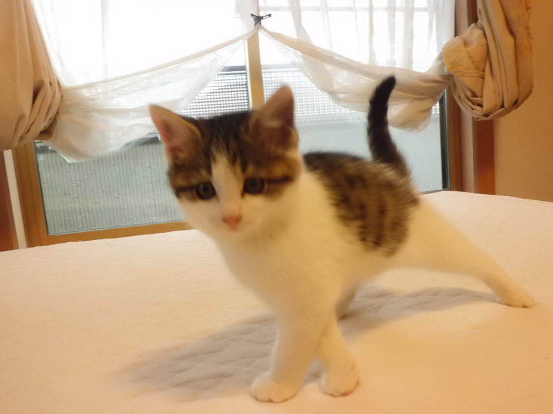 | 特徴(性格など) | 活発で元気なキジ白の子ネコです。 おそらくメスと思いますが、素人のため幼い子ネコの判断は難しいです。 人慣れの最中ですが、抱っこやなでなでを嫌がることはありません。くすぐると喜びます。 現在の食事は母ネコの授乳とキャットフードが半々くらいです。 トイレは問題ありません。 |