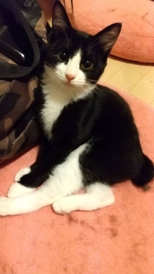 | 特徴(性格など) | 黒白、幸運を引っ掛ける短いかぎしっぽ♡ 猫大好き本当は甘えん坊の寂しがり屋。遠慮猫ちゃんです。 老猫ちゃんとも共存できる、おっとりした性格。 一匹でたっぷり愛情をかけてもらっても、落ち着いた先住さんのいるご家庭でお迎えしていただいても、どちらでも嬉しいです。 ちゅ~るとシラスが大好物! ティッシュや紙くずを丸めたボールで、ワンちゃんのようにくわえて遊ぶのが好きな活発女子^^ |