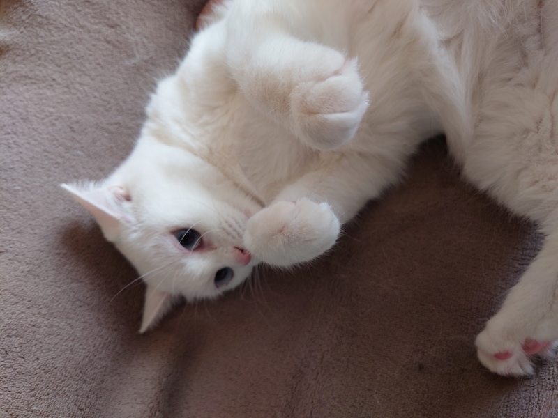 | 特徴(性格など) | 甘えん坊で我が家の猫と一緒に生活しても温厚な性格だったので多頭飼いも大丈夫だと思います。 なれるまで寂しくて鳴くと思いますが、あたたかく見守って下さい。 |