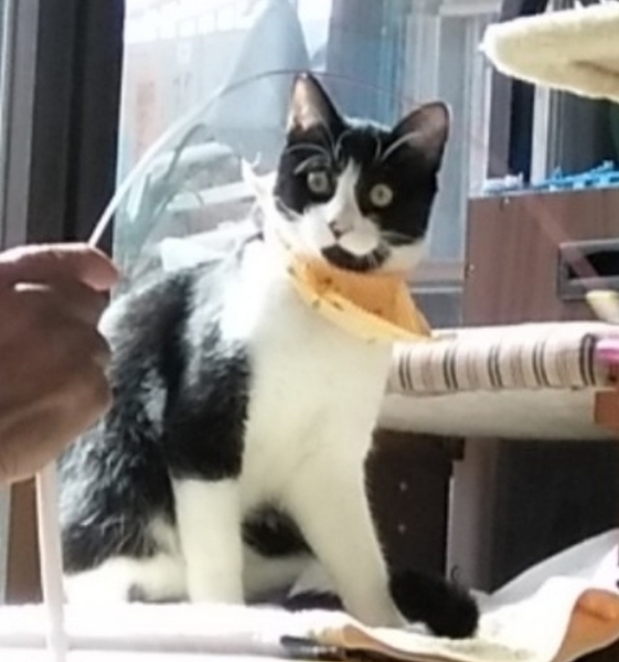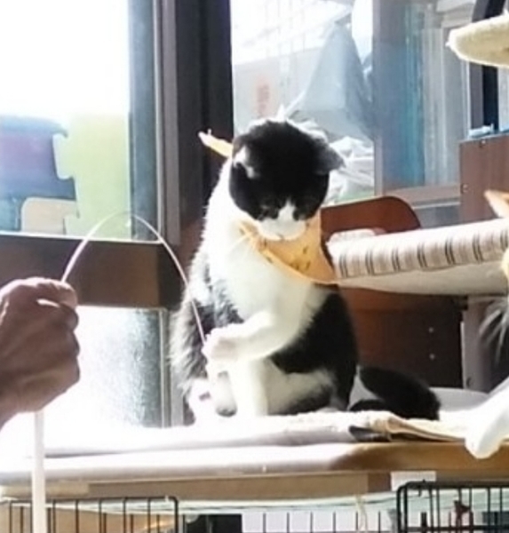 | 特徴(性格など) | ハチワレ(仮名くう)11/29の譲渡会ではご縁に恵まれませんでしたので諦めずに優しい方とのご縁をお待ちします。この子は大変大人しく少々ビビリ?当初3匹の時は他の2匹が楽しく遊んでいるのを傍でジッと傍観している様な男の子です。先日、譲渡会前にシャンプーしましが、暴れる事なくお手入れさせてくれました。 | ||