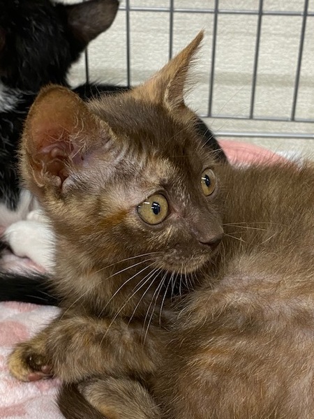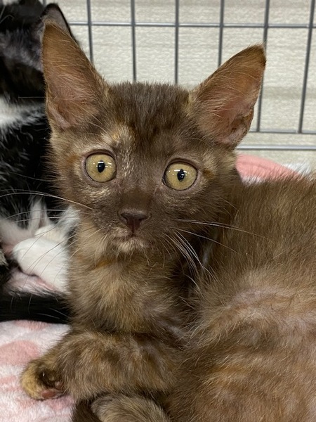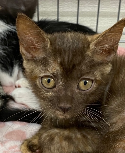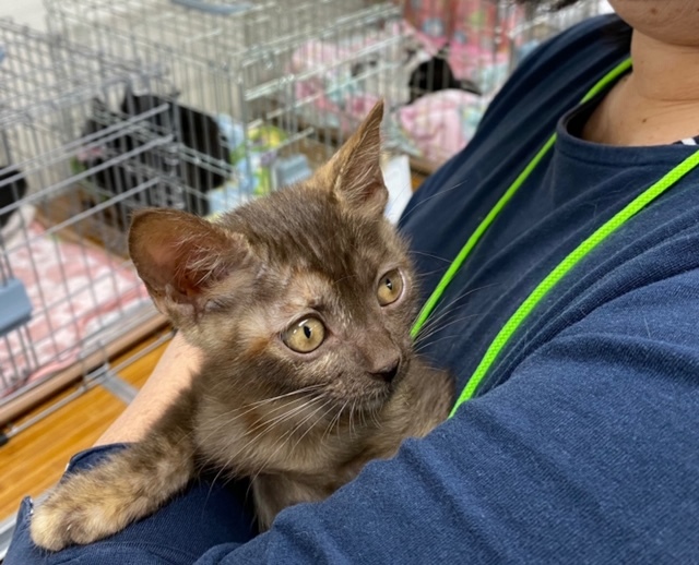 | 特徴(性格など) | 名前:チョコちゃん 女の子 毛色:こげ茶 とっても甘えん坊さんですがとってもお転婆さんです。人の手で育ったのでとっても人懐こい子ですよ。可愛い女の子です。 2020年8月28日生まれです。 健康状態は良好です。 3種混合ワクチン(2回)ワクチンはあと1回接種が必要です。 猫エイズ・白血病検査:陰性 検便:陰性(コクシジウムが検出されましたが駆虫薬で処置しました) 食欲も旺盛です。ドライフードもウエットフードも食べれます。 |