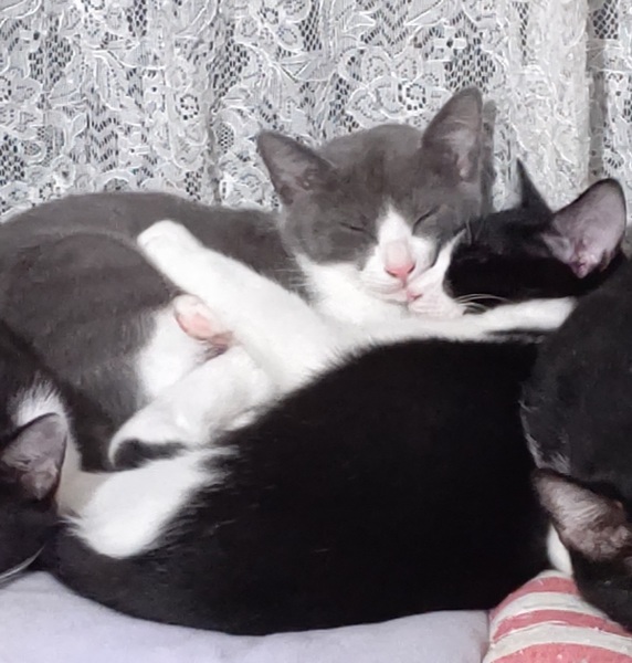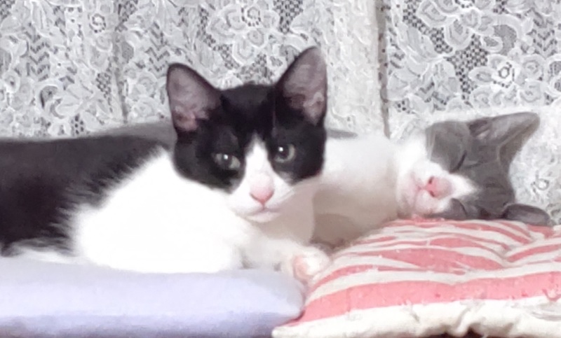 | 特徴(性格など) | グレーの可愛いハチワレと黒のハチワレの兄弟猫です。二匹はとっても仲良しでいつもじゃれて遊んでいます。 二匹とも人見知りで臆病ですが、実はとっても活発な男の子たちです。愛情をたっぷりに与えて頂ける里親さんを募集しています。 |