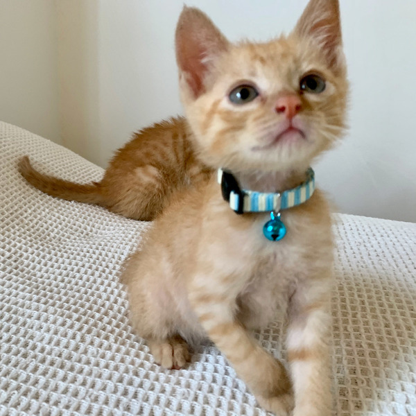 | 特徴(性格など) | 茶トラ(メス)と白茶トラ(オス)の姉弟です。 メスはおっとりしているけれどジャンプ力あり。巻き(カギ)尻尾が特徴です。 オスはメスの子よりやんちゃ。ストレート尻尾。 二匹で仲良く遊んでいます。寝るときは寄り添っています。 トイレトレーニング済みです。 10/9(金)にレボリューション(ノミ取り)を塗布しました。 引き渡し前にこちらでワクチン摂取をいたします。 |