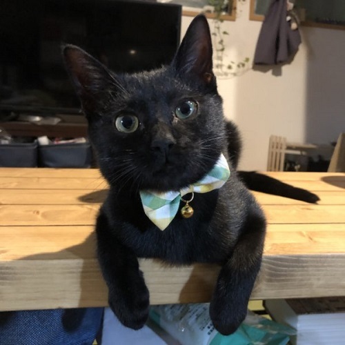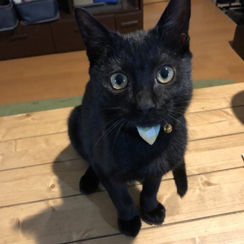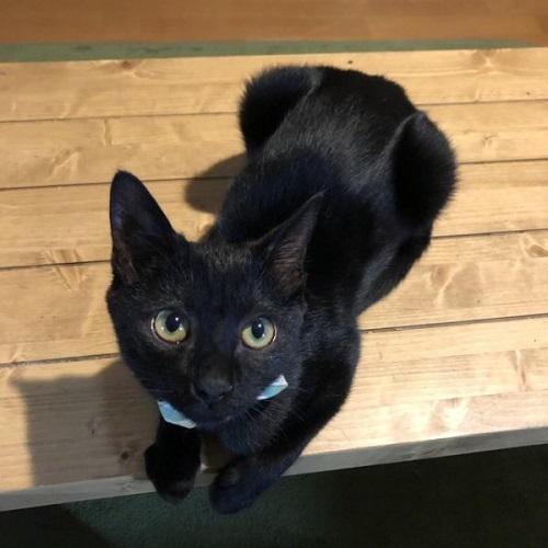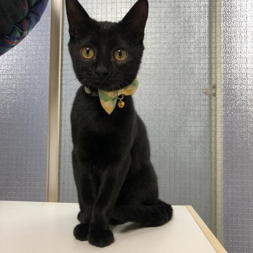 | 特徴(性格など) | 明るく元気、やんちゃで遊び好きの男の子です。初めての方にも割と短時間で慣れます。黒くて細いのでひじきと言う名前を付けました。細い割にはたくさん食べて、真っ黒な体にはひょろっと長い折れ尻尾が特徴です。一頭飼いがお勧めです。 | ||