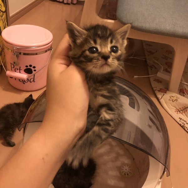 | 里親募集する理由 | 保護猫になります。飼い主様のお宅で産まれて飼育困難となり保護いたしました。 キジトラの子が1匹オスとなります! 検便、虫下し、ノミダニ駆除、軽い健康診断はしました! 全て異常なしでした! ウイルスチェックはしていませんが必要でしたら 里親様にて医療負担をしていただけるのであれば行いますがはっきりわかるのが生後半年くらいに検査をすれば確実と病院でいわれておりますので 保護猫であると言うことを御理解の上でご応募してください!よろしくお願いします( ´ ` ) |